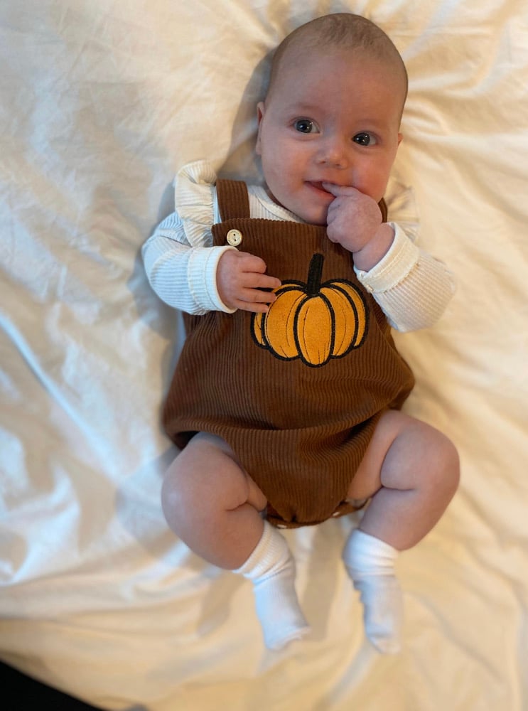These Cutie Spooky Dungarees Are A Corduroy Cotton Blend, With Popper Bottom & Button Dungaree Fastenings. All Finished With It's Own Embroidered Halloween Print.